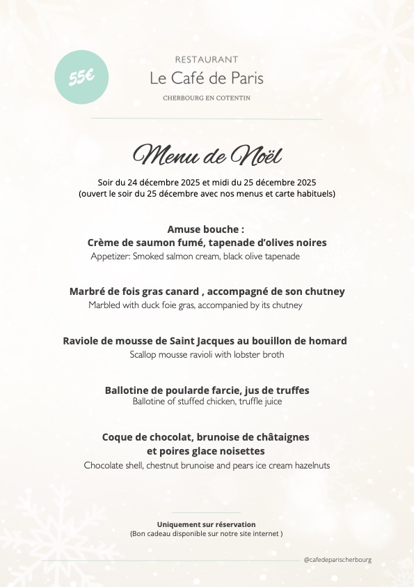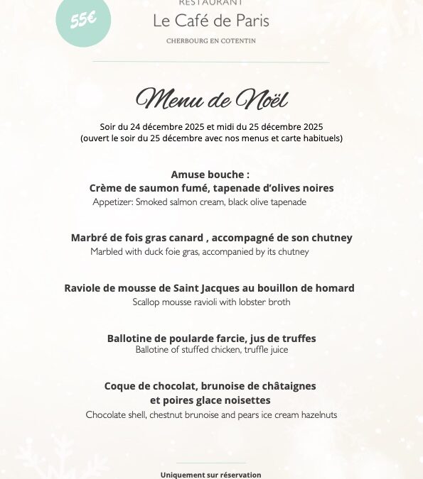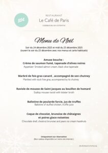 Restaurant Café de Paris – Menus fetes de fin d’année 2025